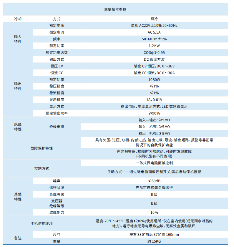 主要技術(shù)參數(shù)